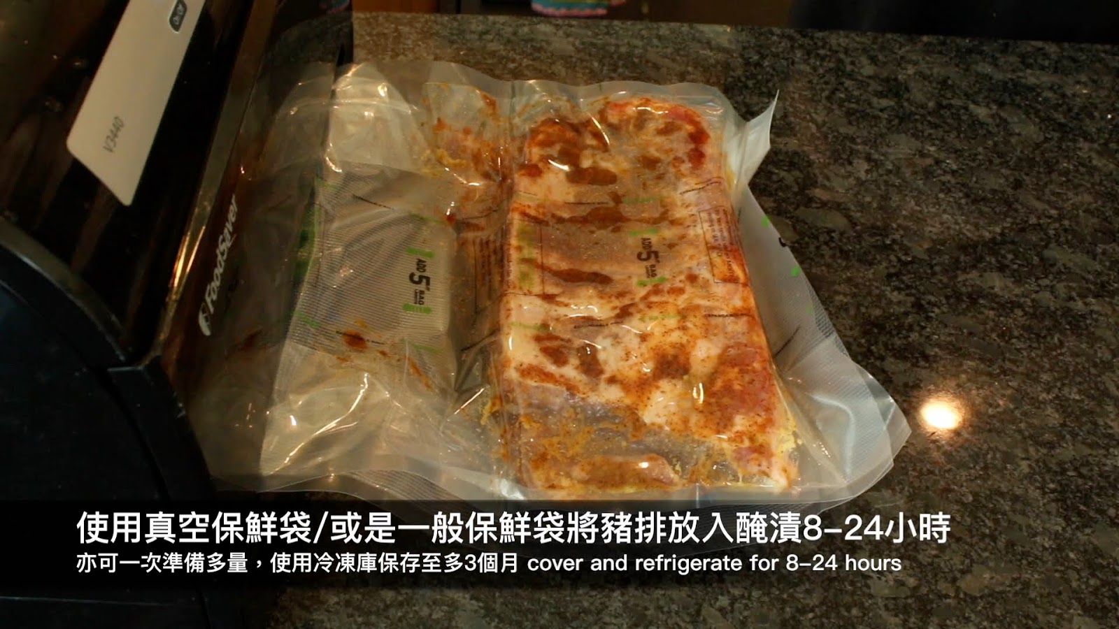 4. 使用真空保鮮袋,或是一般保鮮盒/保鮮袋,將豬排放入醃漬8-24小時(或是直接冷凍保存)
